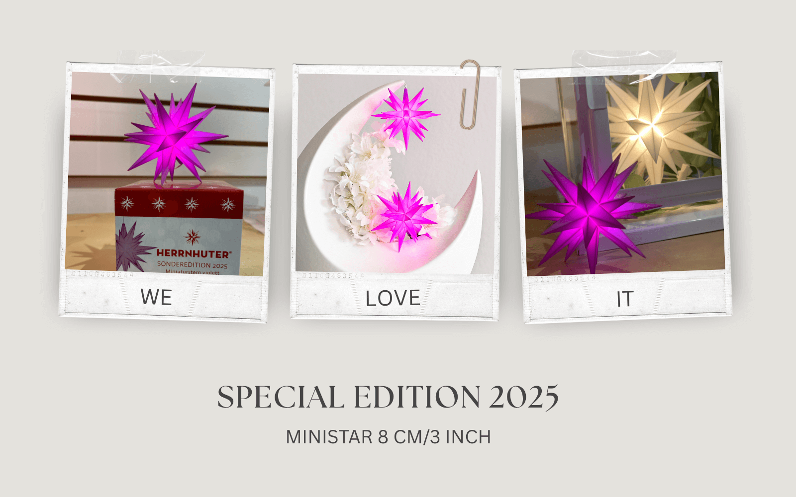 After 10 unforgettable years, the beloved A1e Special Edition Herrnhut Stars series is bidding farewell. But don’t worry – we’re not closing the book just yet. In fact, we’re opening a brand new chapter with something even more dazzling: the first-ever miniature Herrnhut Special Edition in one of your all-time favourite colours: PURPLE!
